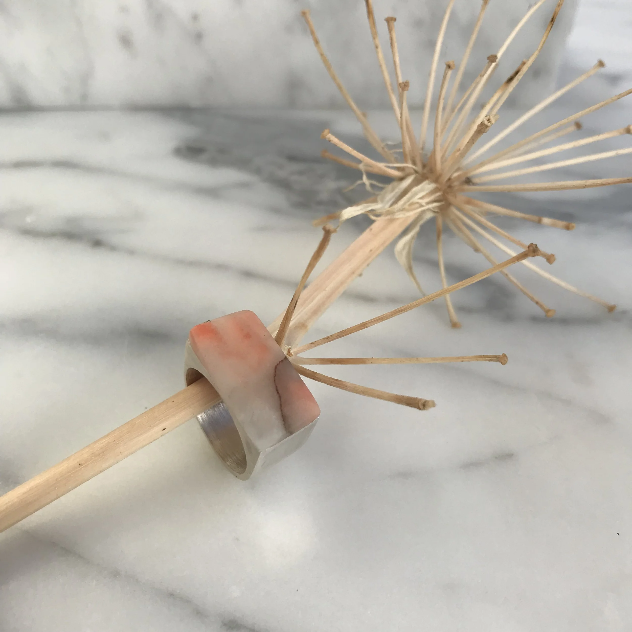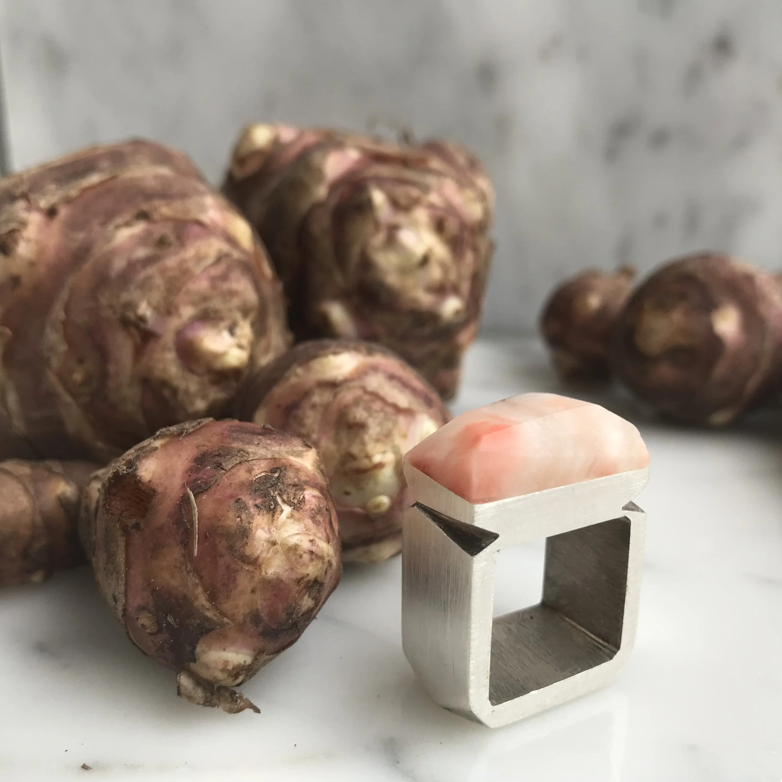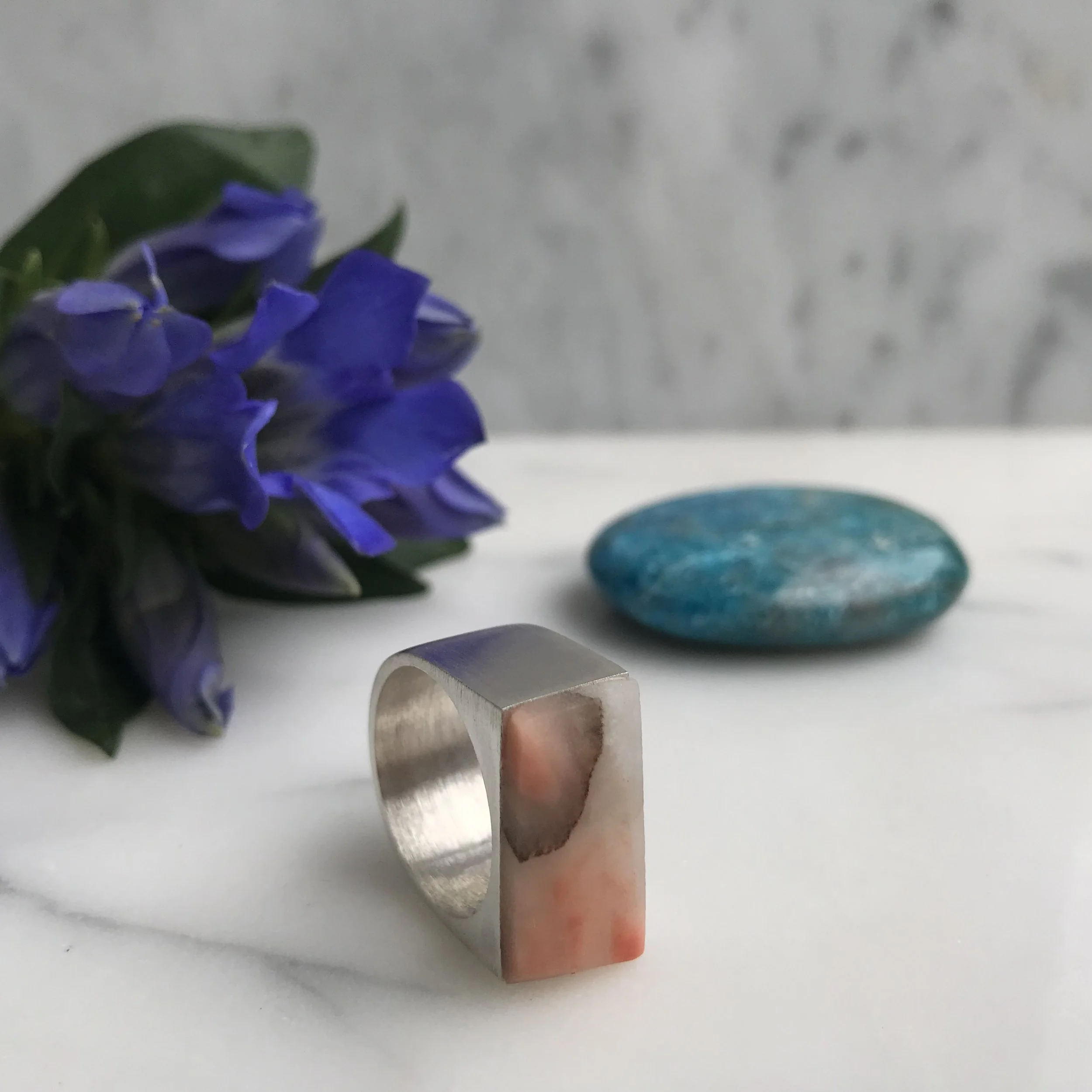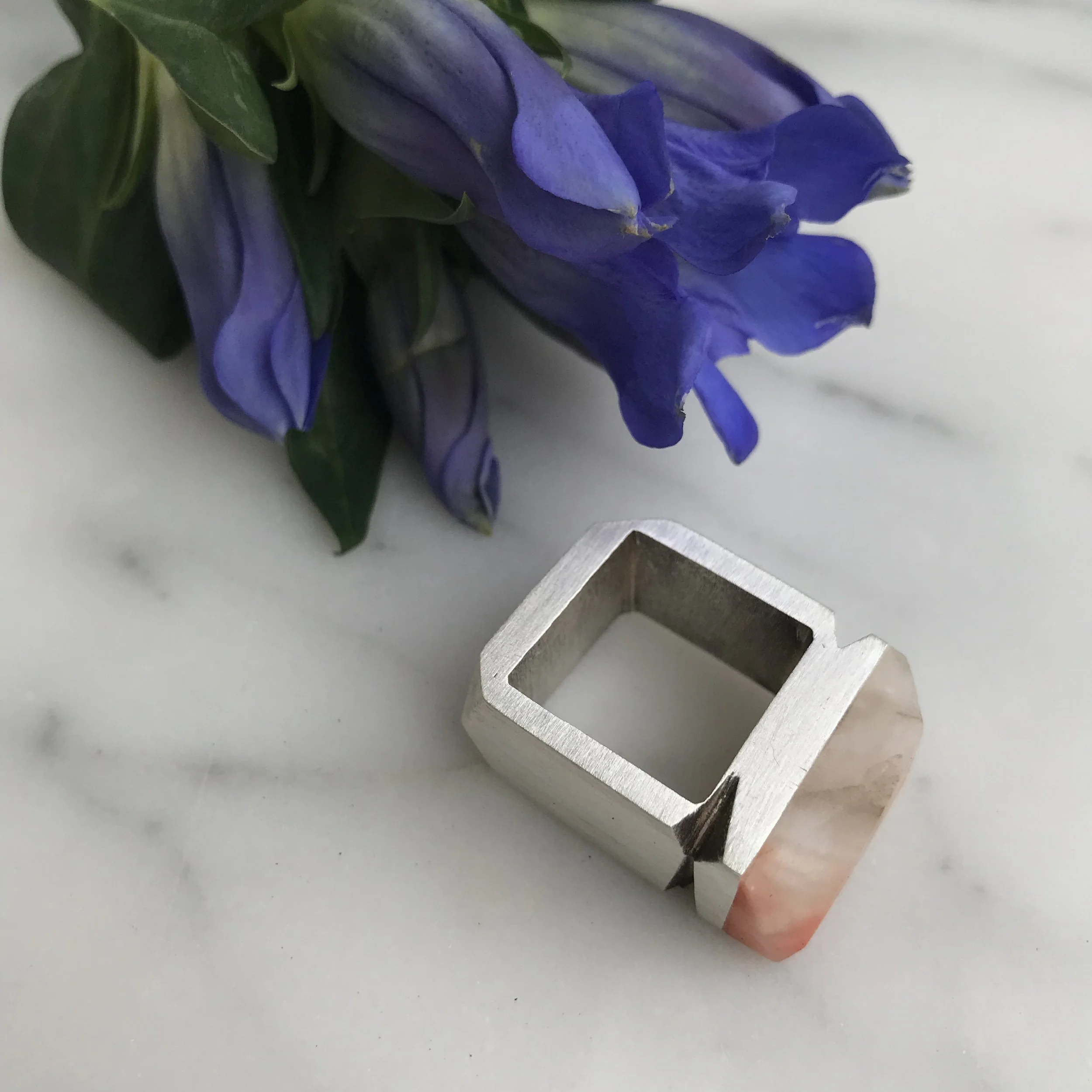 In this new pieces I like to play with the contrast between the strait lines of the cut facets in the stone, with the softer changes in the colors tones, from white to black passing through pink.